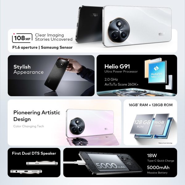 itel S24 (8GB RAM + 128GB ROM) upto 16GB RAM with Memory Fusion | Dawn White